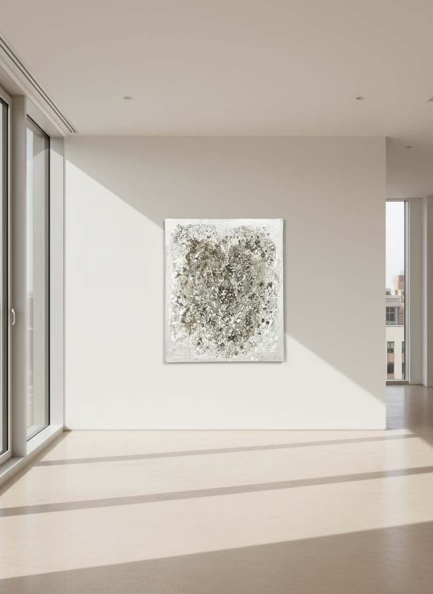 This painting embodies the transformative energy of cosmic restructuring, capturing the moment when dispersed stardust coalesces back into unified form. The composition reflects a profound philosophical principle: that stillness emerges naturally following sacred reordering at the molecular and energetic levels. Through masterful use of color and form, the work invites contemplation of how chaos and order exist in dynamic balance. The visual language speaks to the alignment of spatial energies with profound calm and tranquility a meditation on the universe's inherent tendency toward harmony. Each brushstroke contributes to a larger narrative about transformation and renewal, suggesting that true peace arises when matter and energy realign according to their essential nature. This piece serves as both a visual anchor and a philosophical statement, ideal for those seeking to cultivate mindful spaces that honor the interconnectedness of all things. It resonates with viewers who understand that beauty and serenity emerge from understanding the deeper patterns that govern existence.