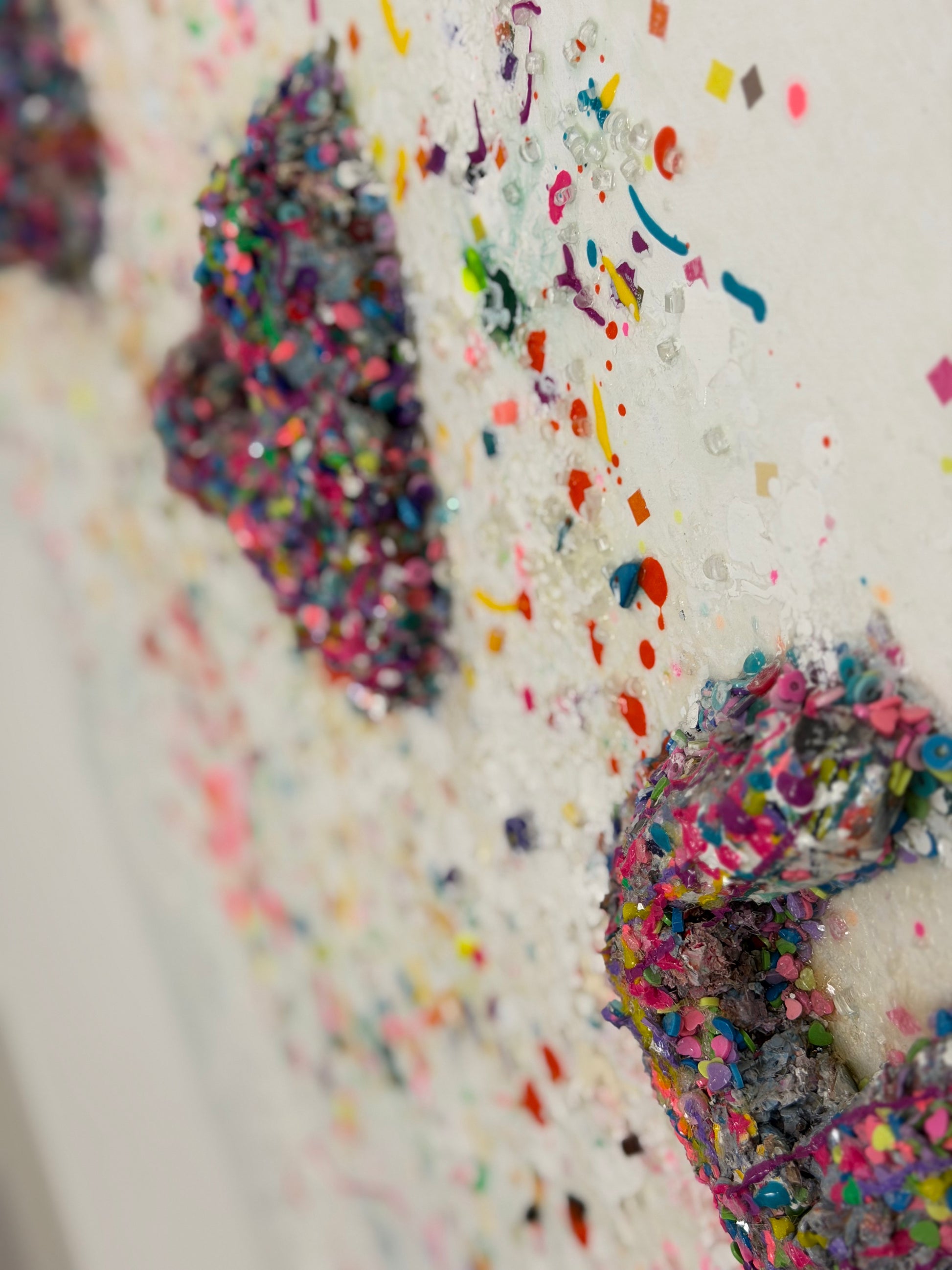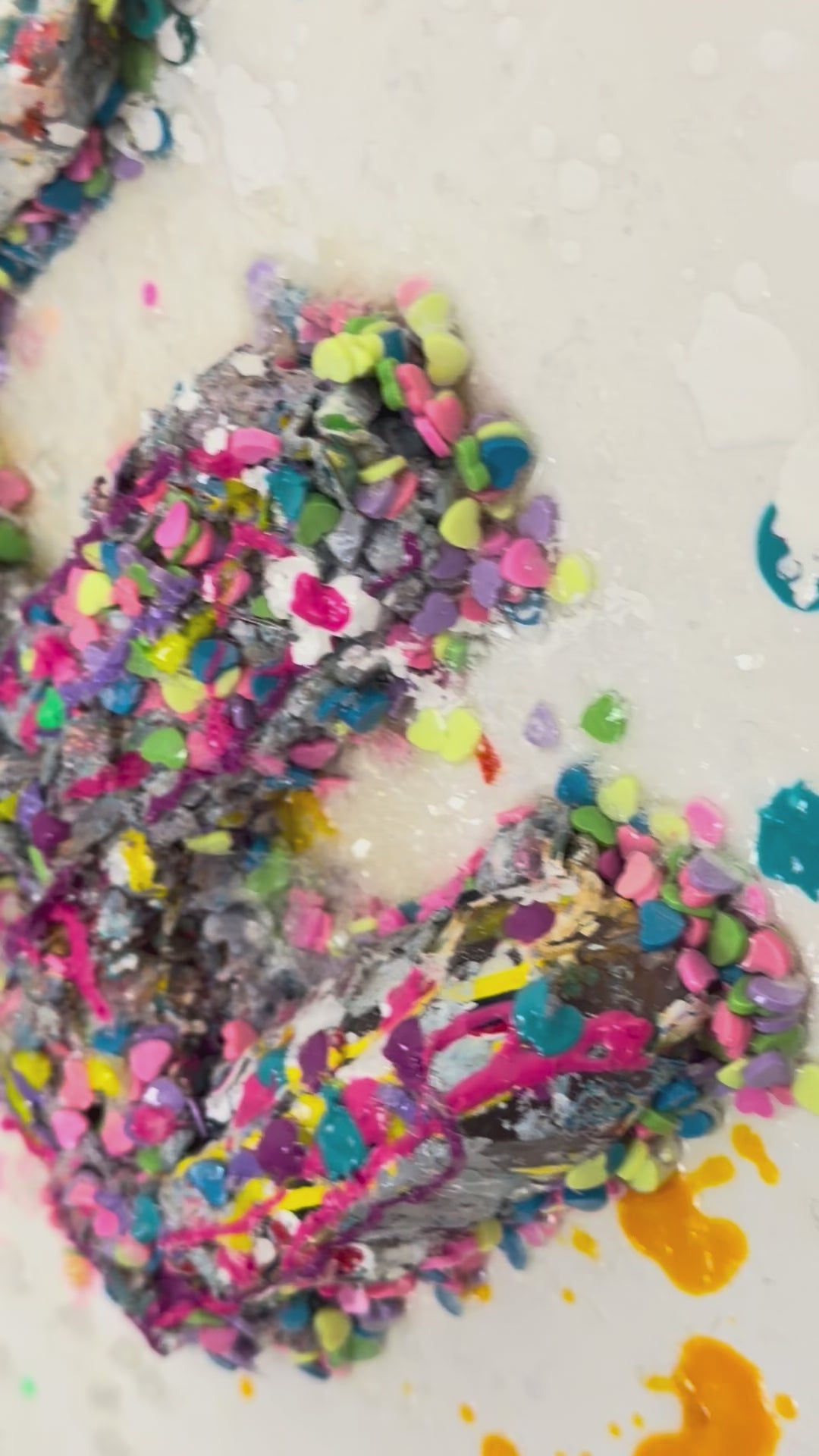 Live love a painting that is made up of tiny pieces of paint over time sculptured into form.