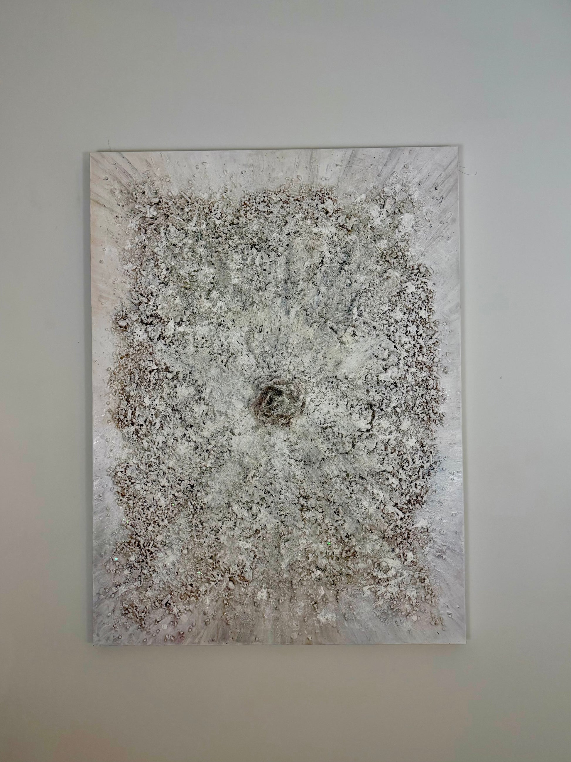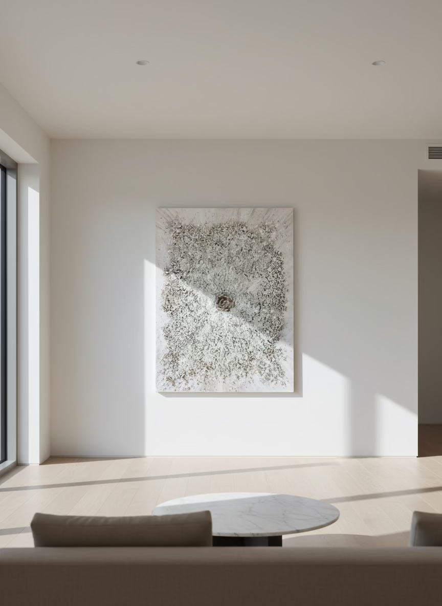 The painting feels like a portal into the sacred neutral, the vast and silent dimension that exists before creation chooses its direction. It is the womb of possibility, the untouched field where nothing is defined yet everything is present. In this space, time dissolves. Identity loosens. The mind releases its grip, and what remains is pure potential—unclaimed, unshaped, eternal